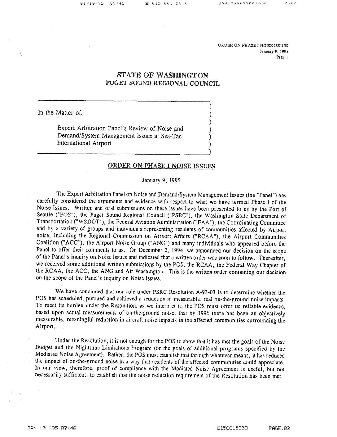This. is the FmalDecimon on.Noise ;L~es by. the Expert .Arbitration 'Panel on Noise and D~d(System Mrul!igfj)li61lt issues; (the •'Panel".). ·After making a thorough .and mdependent ev~~ti~n of_aH ~fthe evid~oo and ar~ents. tb.at have been present~d-to us vJith respect to t?e :reduetio~-:n noxse :unpacts , . ~ required by Resolution A~93-03 as a ooooition fur the Puget Sound Regt.onru Councils approval of a trura · runway 11X·Sea-Tac.futt7~tional Airpon; a majority of the Panel:> consisting ofPra.fessor William Bowlby and iVIs.IViarths Lat:igel~ ha,s reaclieti the fo~o·w:tng conclusion:. · Alt~ough the For:t .of Searde has :~cheduleclpursued, and achiev~d an impressive array of noise abatement a.ud:mitig~riri piogt:~.s~.the _POxt hilS not shown a reduction in real on~the-. ground nois~i impacts ·sufficient fu =sati~ th~ uoise redu~ti.on con.diti.on l,mposed by Resolution A-93-03 . . _ _ 1 . - • • .•. ··· ._:_ :.~-:~:~ _ _ .:..-<.-. · ;=· - - ~ - _. ;~ ·~ . . · . ' Mx.~~oott P; ~~;·:€.JA1~ :~(th~·~a.y.~ w~uld· fip(i that the Port has satisfied the requiremen·~s of the ~· . R~.sOimio~ aiuJ, dissent.e.tfonrthisJ:~~~n'::. . · :·: . · · · _. . t . :~· · ·,; · ·. - . · -."'- ' . · ·_;· -.r"""'~ ·.·· ~-= · ··~ .-- ~-~ .:-~ ·. : .::~." .. . :> •• -: - , :' • • • • w<i:.otr~ b.~ow.~a 'stat~ ~f~e,·h'~~9ubd_arid .bistoxy ofthePanelvs consideration ofNoise Issues ~-;, .. · · .. under J;~~- S.QUJ1d·~~me~,p~._(~tpSRC11}1~esollltion A~~3-03, ~- summ.ary ofth~ basis of the '': ... --~orityt.s decl.Sio~:~o~e~datiops… -