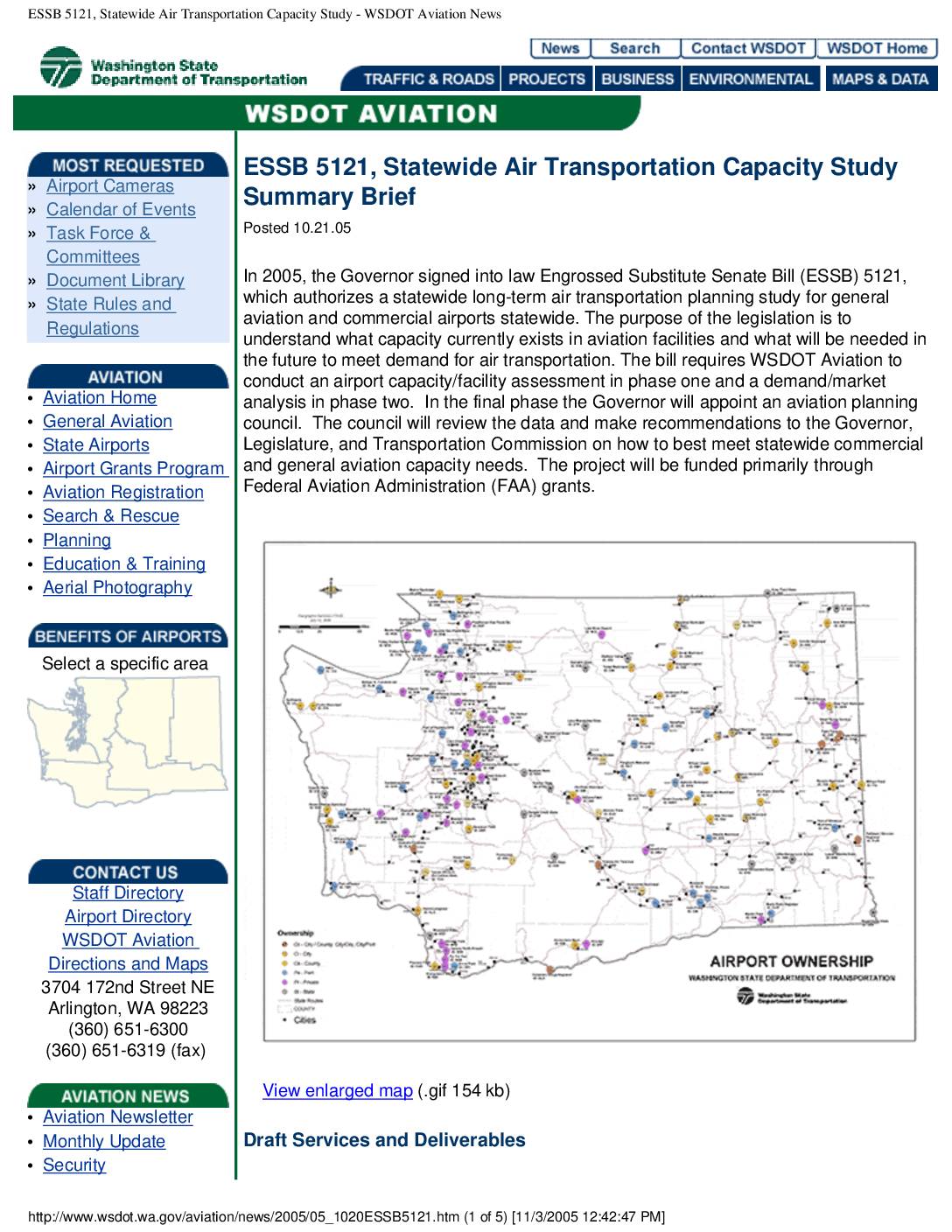 ESSB 5121, Statewide Air Transportation Capacity Study - WSDOT Aviation News -