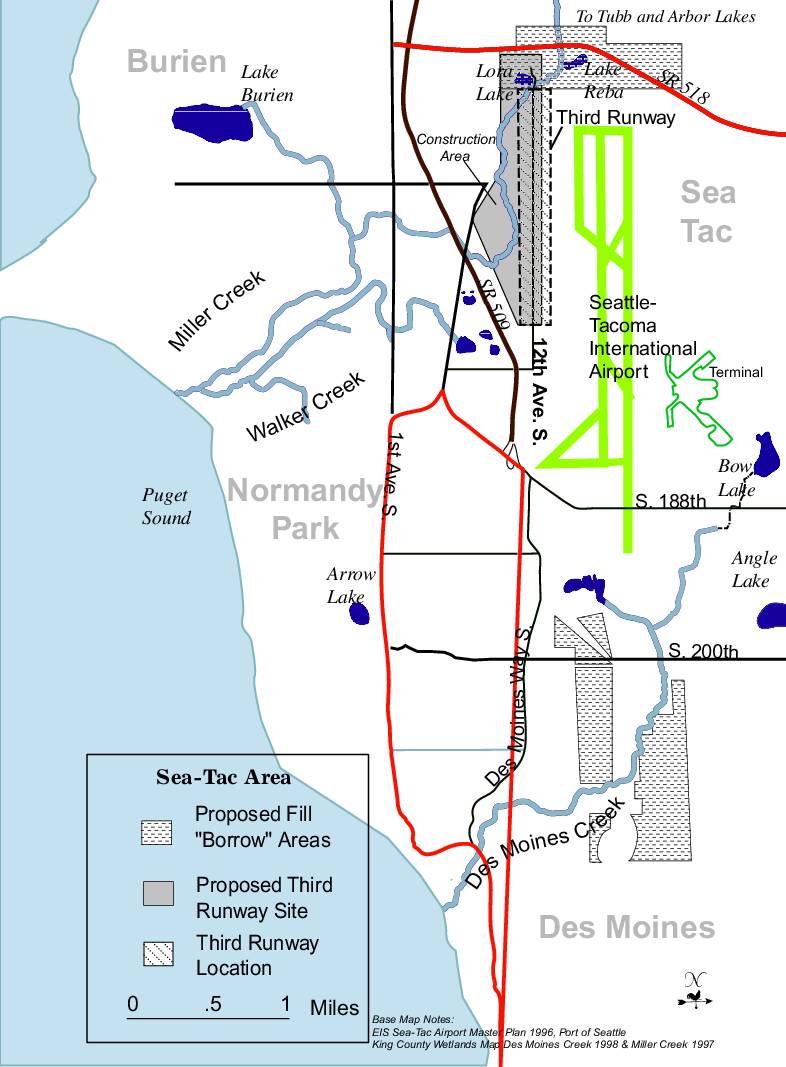 EIS Sea-Tac Airport Master Plan 1996, Port of Seattle King County Wetlands Map Des Moines Creek 1998 & Miller Creek 1997 -
