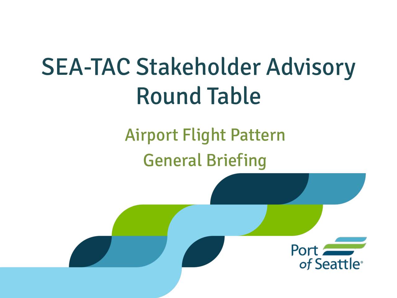 StART enhances cooperation between the Port of Seattle and the neighboring communities of Sea-Tac Airport Meeting Agenda October 23, 2019 6:00 pm - 8:00 pm Seattle-Tacoma International Airport Conference Center 17801 International Blvd. (Directions) Meeting Objectives: To recap the Aviation Noise Working Group and Federal Policy Working Group meetings. To discuss the Late Night Noise Limitation Program 3rd quarter results. To provide input to the consultant for the Ground Noise Analysis scope. 6:00 pm Welcome Lance Lyttle, Sea-Tac Airport Managing Director • Member Introductions StART members • Opening comments Lance Lyttle 6:10 pm Facilitator’s Update Phyllis Shulman 6:15 pm Introduction of the new FAA Dave Suomi, FAA Regional Administrator, Community Engagement Officer: NW Region Justin Biassou 6:25 pm Recap of Aviation Noise Working Tom Fagerstrom, Port of Seattle Group Meeting • Discussion StART Members 6:35 pm StART Federal Policy Advocacy Marco Milanese, Port of Seattle Work Plan Review • Discussion StART Members 6:45 pm Late Night Noise Limitation Tom Fagerstrom, Port of Seattle Program – 3rd Quarter Results and Expected Outreach • Discussion StART Members 6:55 pm Ground Noise Analysis Consultant Brad Nicholas, HMMH Introduction and Scoping Discussion • Discussion StART Members 7:45 pm Public Comment Public 8:00 pm Meeting Wrap Up Lance Lyttle • Closing Comments Next Meeting: December 11 - 6:00 pm - 8:00 pm, Location Sea-Tac International Airport Conference Center https://www.portseattle.org/Business/Conference-Facilities/The-Conference-Center-at-Sea-Tac/Documents/TheConferenceCenter-DIRECTIONS.pdf -
