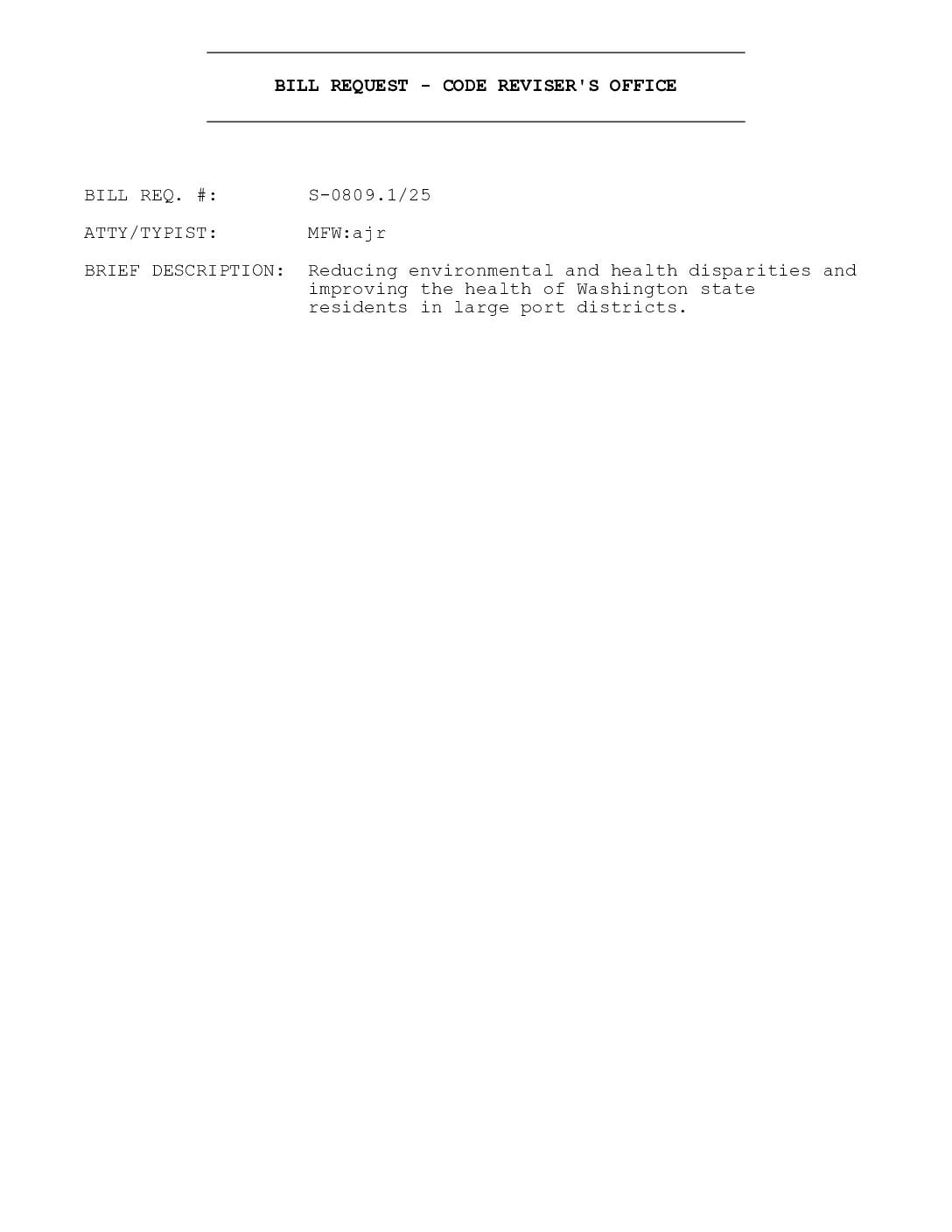 BRIEF DESCRIPTION: Reducing environmental and health disparities and improving the health of Washington state residents in large port districts. AN ACT Relating to reducing environmental and health disparities 1 and improving the health of Washington state residents in large port 2 districts; and adding a new chapter to Title 53 RCW.3 BE IT ENACTED BY THE LEGISLATURE OF THE STATE OF WASHINGTON:4 NEW SECTION. Sec. 1. The definitions in this section apply 5 throughout this chapter unless the context clearly requires 6 otherwise.7 (1) "Cumulative environmental health impact" has the same meaning 8 as in RCW 70A.02.010.9 (2) "Environmental benefits" has the same meaning as in RCW 10 70A.02.010.11 (3) "Environmental harm" has the same meaning as in RCW 12 70A.02.010.13 (4) "Environmental impacts" has the same meaning as in RCW 14 70A.02.010.15 (5) "Evidence-based" has the same meaning as in RCW 70A.02.010.16 (6) "Overburdened communities" has the same meaning as in RCW 17 70A.02.010.18 (7) "Qualifying port district" means a port district authorized 19 to undertake programs for the abatement of aircraft noise under RCW 20 53.54.010.21 Code Rev/MFW:ajr 1 S-0809.1/25 (8) "Significant port action" means any action involving a 1 capital improvement project, purchase, or construction of $8,000,000 2 or more in value or any action that increases the number of gates at 3 an airport.4 (9) "Vulnerable populations" has the same meaning as in RCW 5 70A.02.010.6 NEW SECTION. Sec. 2. (1) A qualifying port district must 7 include an environmental justice implementation plan within its 8… -