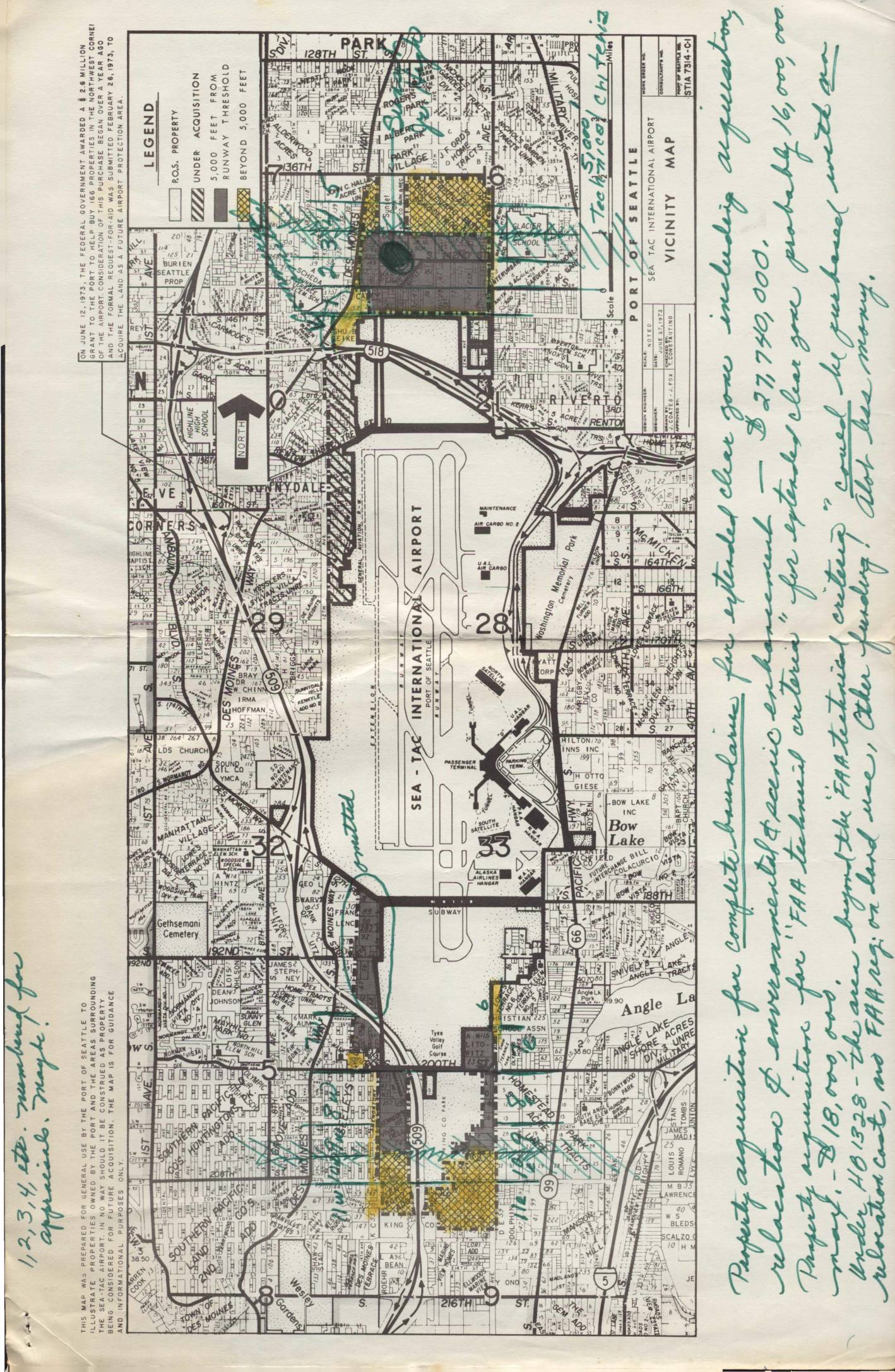 ' r" l • o , o I I • "" ' •' •' ' '" . . COI-1MISSlON AG ENDA September 7, 197 3 IT EM NO.--------=-=-<::...__ ___ _ TO Mr. J. Eldon Ophe im, Gene ral Manage r DATE O F ME E TING 9 ~/ /.,7 3 r»-7 FROM Dona ld G. Shay, Director of Aviation SUBJECT R e port and R e commendations re Inter i m Land A cquisition Sea-Tac Intern ationa l Airport Pursuant to directions is sued by the Commission June 12, 197 3 , the staff has made a study of the possibility and extent of an interim land acquisition program. Interim refers to that land acquisition which might be acc01nplished in accord with current Federal Aviation Administration policies and funding c a pabilities, Port o:f Seattle funding capabilities and further, a.nd importantly, that which does not purport to finally or totally answer those questions which are within the purvie w of the Sea-Tac Master Plan and Environs Study. In conside ring the ex tent of the land acquisition, we cons idered firs t that land which would be e ligible for FAA participation according to the stricte st int e rp r etation of their cm·rent regulations. This includes such areas o f l a nd wh-_ch may extend up to 1, 250 fee t late rally from the runway centerline, extending 5, 000 fe e t b eyond each end of th e primary surface. This would mean a northerly… -