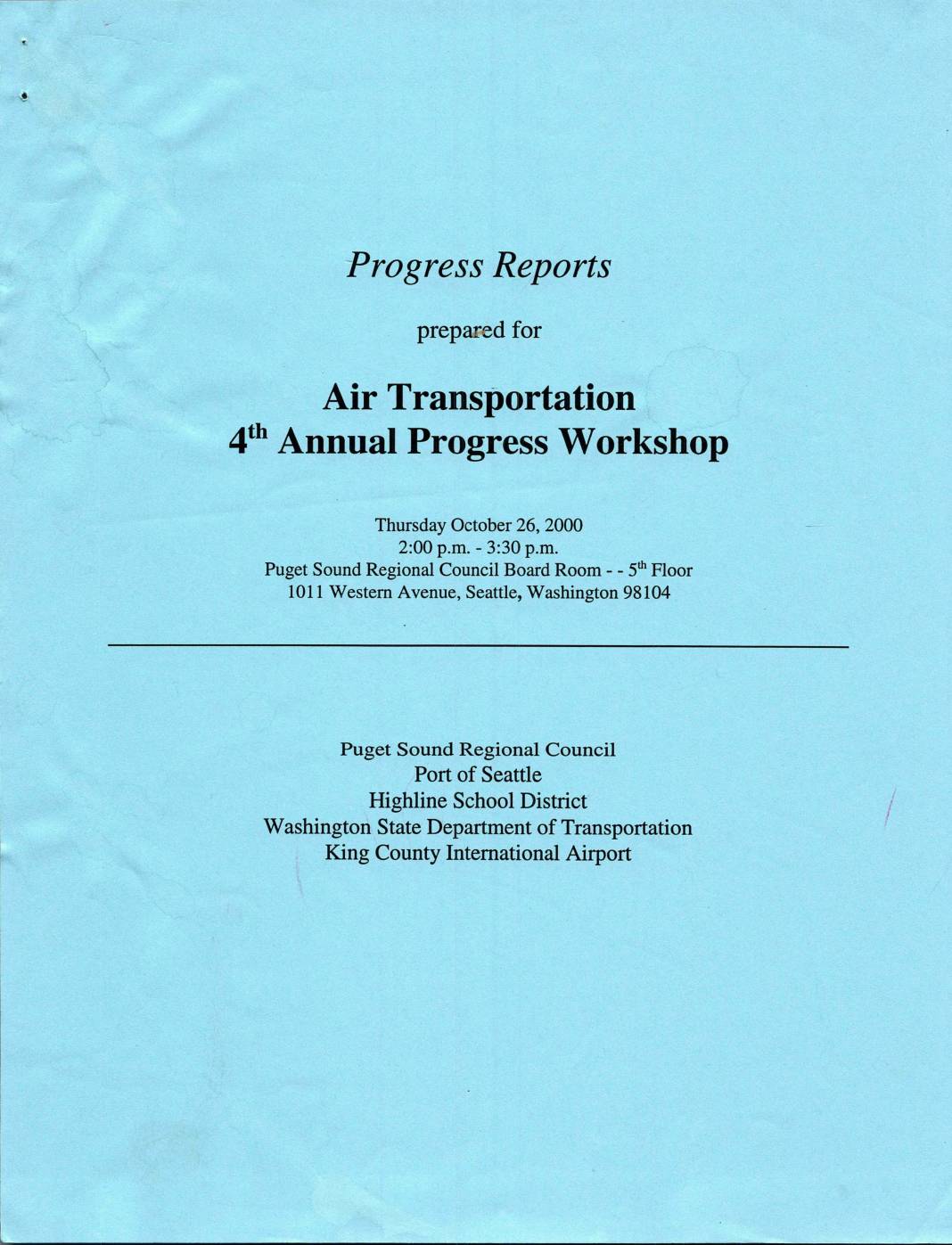 BAC SP #2 Progress Reports Air Transportation 4 Th Annual Progress Workshop 20001026 PSRC Port Highline Schools WSDOT KCIA 0001