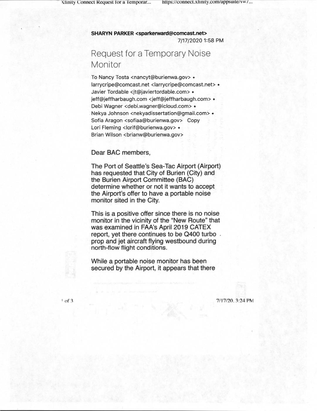 BAC SP #2 Pos Sharyn Parker To BAC Re Temporary Noise Monitor 20200717 0001