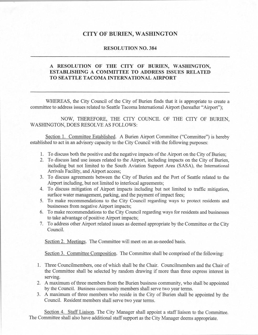 BAC SP #2 Burien Resolution #384 Establishing Burien Airport Advisory Committee 0001