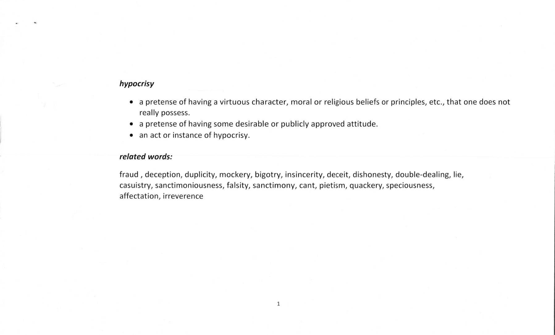 • a pretense of having a virtuous character, moral or religious beliefs or principles, etc., that one does not really possess. • a pretense of having some desirable or publicly approved attitude. • an act or instance of hypocrisy. related words: fraud , deception, duplicity, mockery, bigotry, insincerity, deceit, dishonesty, double-dealing, lie, casuistry, sanctimoniousness, falsity, sanctimony, cant, pietism, quackery, speciousness, affectation, irreverence Comparison of Expert Arbitration Panel’s Review of Noise and Demand/System Management Issues at Sea-Tac Airport in March 19961 and FAA’s Record of Approval of Sea-Tac’s Part 1 50 Noise Cornpatibility Program2 To the people living in communities surrounding Sea-Tac Airport (Burien, Normandy Park, Des Moines, Sea-Tac, and Federal Way), aircraft noise is a constant health distraction because when they purchased their homes, there was either tolerable aircraft noise or none at all. However, unconstrained growth has shifted the so-called "balance” between livability to outright incompatibility with neighborhoods of families, retired folks living on fixed incomes, and economically-challenged populations that qualify as eligible for environmental justice. Consequently, local cities are demanding to know how much, if any progress, POS has made on program elements contained in its latest 2013-2018 Part 150 Study by requesting current information using FAA’s Record of Approval released in June 2014 (that included only newly-opened third runway, not ALL three runways) as described in the matrix below and other program elements dating back to POS’ first Part 150 Study in 1985. Juxtaposed here is another "update” of all the incomplete and unfinished noise abatement and… -