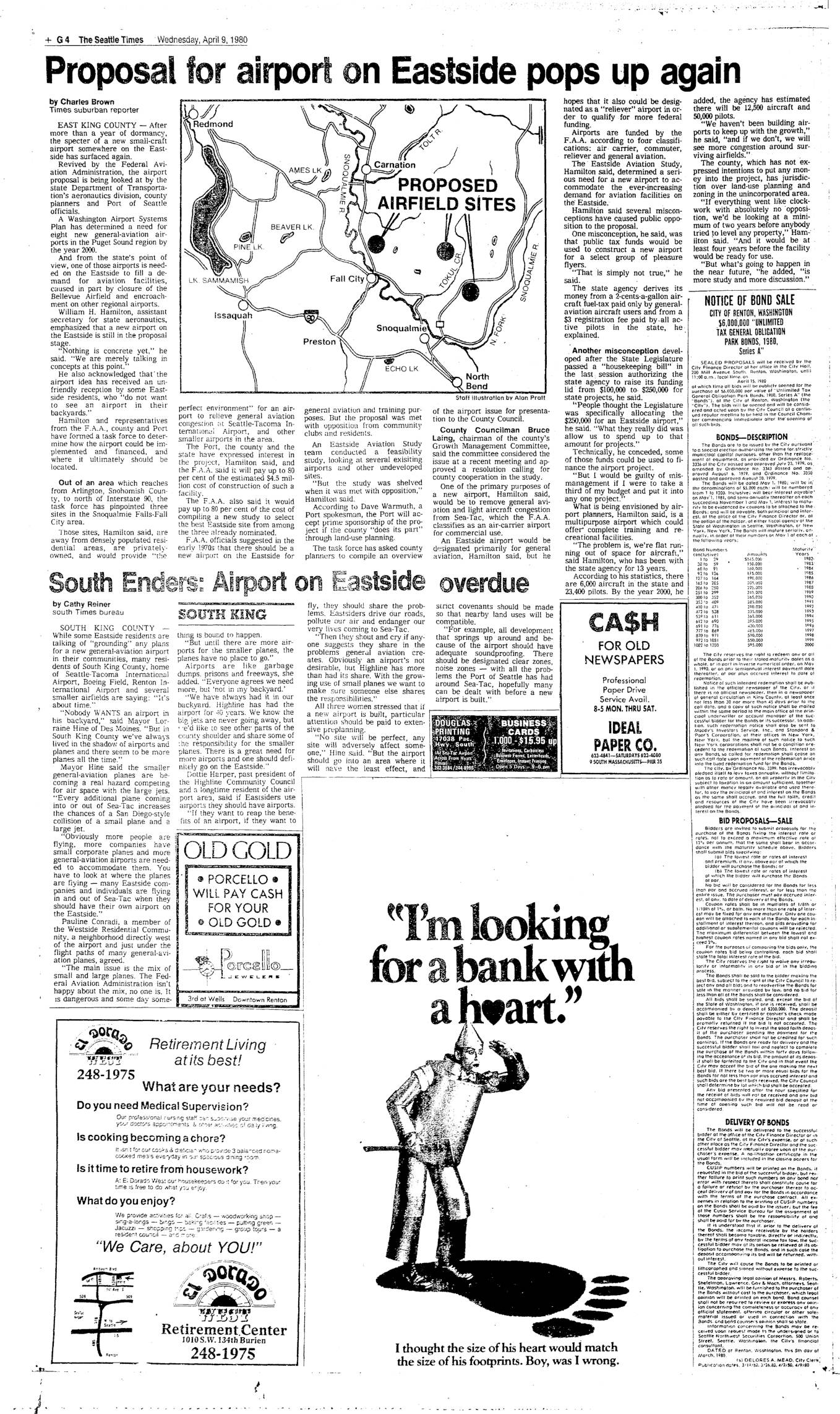 • Seattle Times – Eastside Airport Proposal in Carnation, April 9, 1980