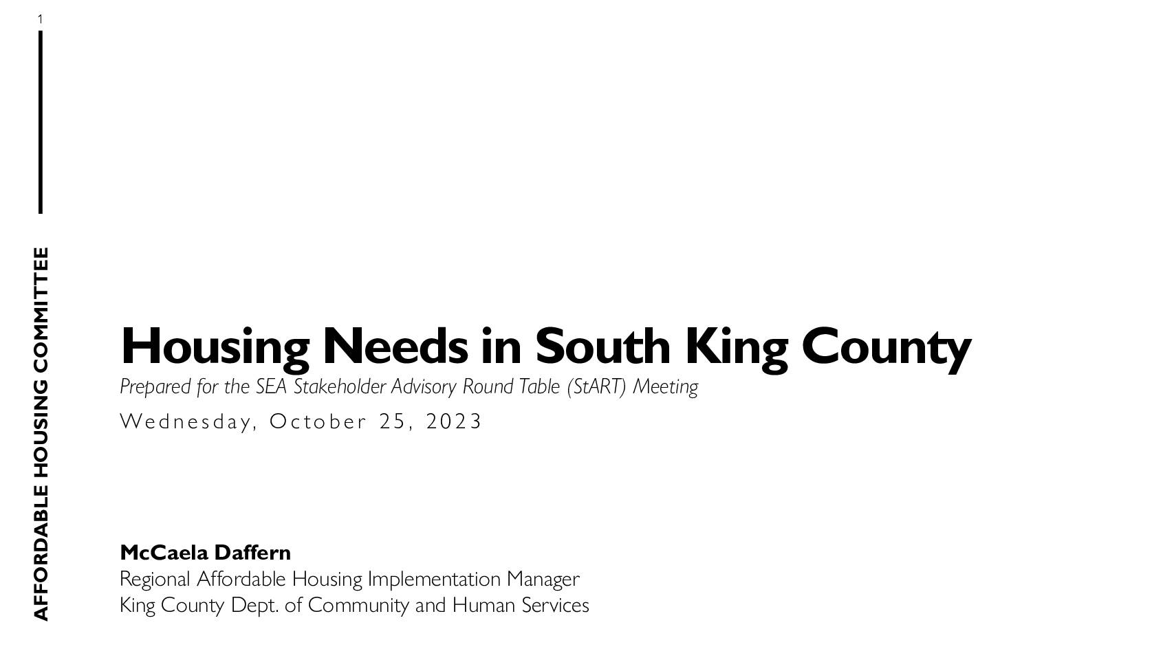King County SEA Stakeholder Advisory Round Table AHC Housing Needs Presentation, 2023.10.25