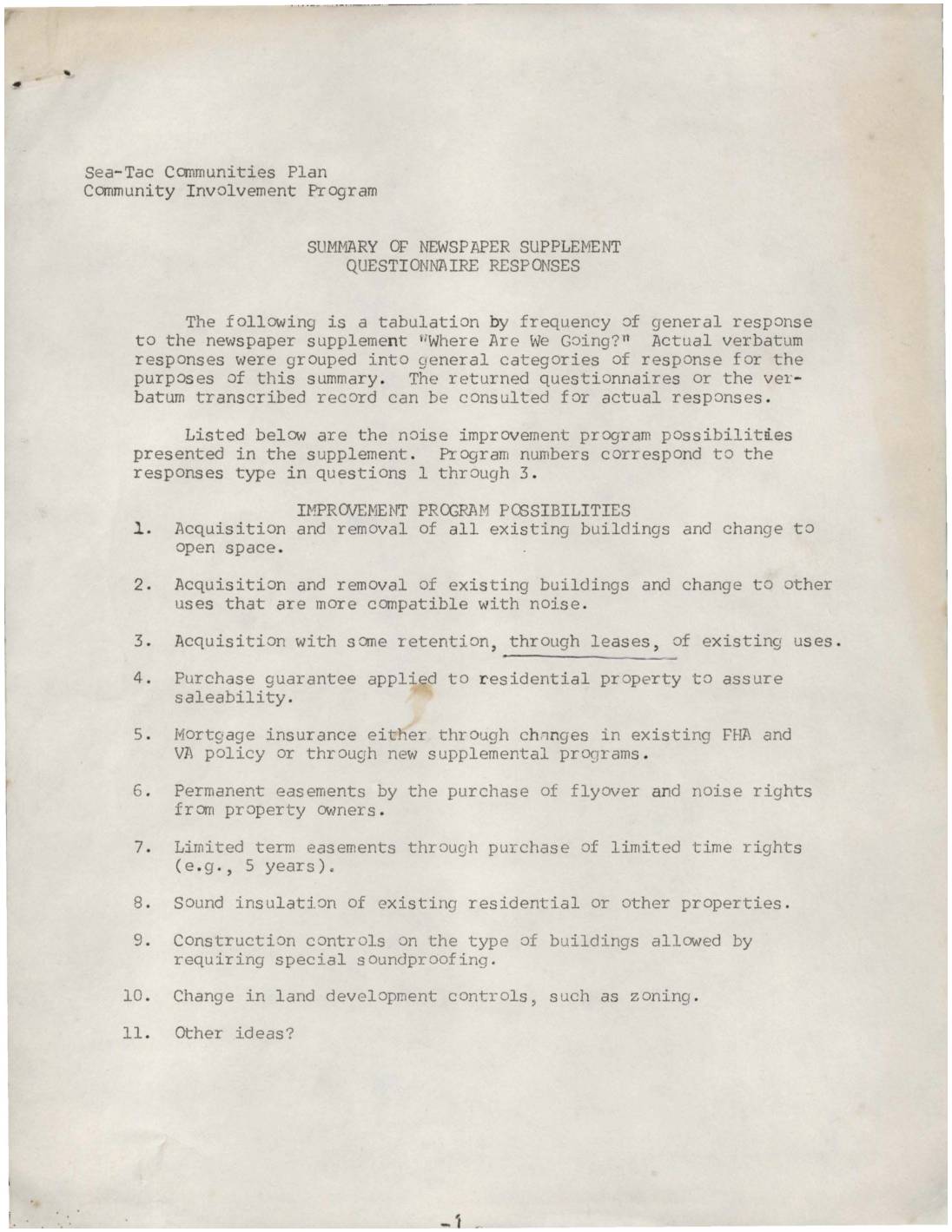 Sea-Tac Communities Plan Community Involvement Program Summary of Newspaper Supplement Questionnaire Responses