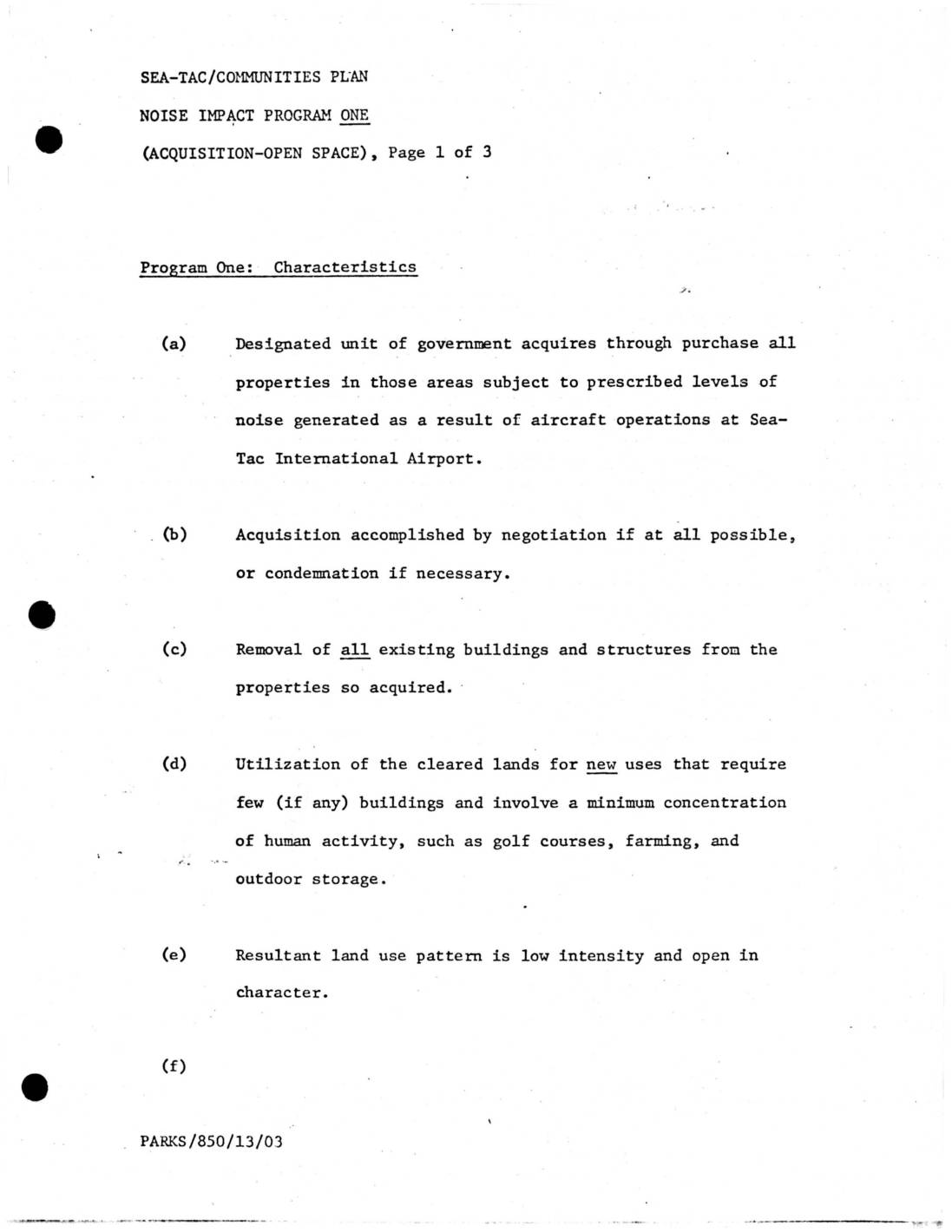 STCP Noise Impact Program One (Acquisition-Open Space)