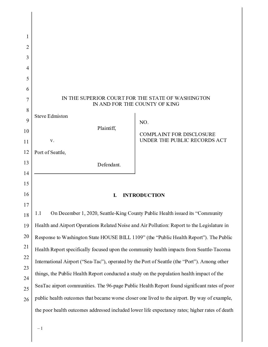 Edmiston v. Port of Seattle – Public Records Act Complaint, September 29, 2022