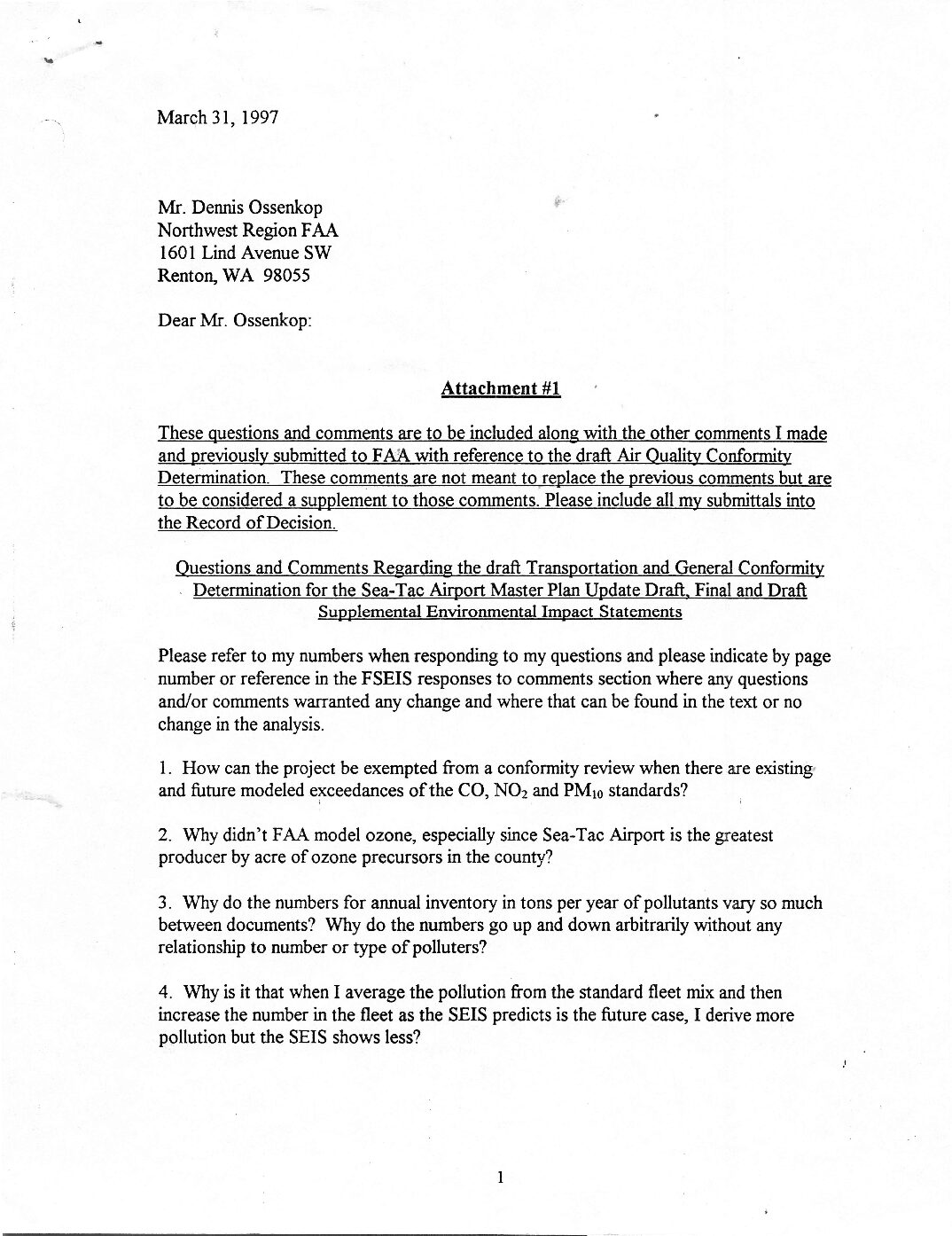 ACC Comments On Draft Supplemental EIS For Proposed Master Plan Update March 19 1997 0001