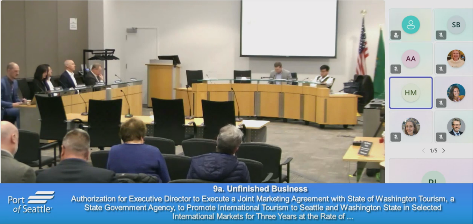 Last minute amendment to limit cruise marketing fails 2025 01 28 Agenda Packet Item 9a: Authorization for the Executive Director to Execute a Joint Marketing Agreement with State of Washington Tourism (SWT), a State Government Agency, to Promote International Tourism to Seattle and Washington State in Selected International Markets for Three Years at the Rate