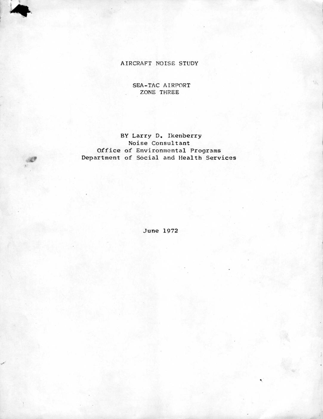 Zone 3 Committee Sea-Tac Airport Noise Study Larry Eikenberry-June 1972