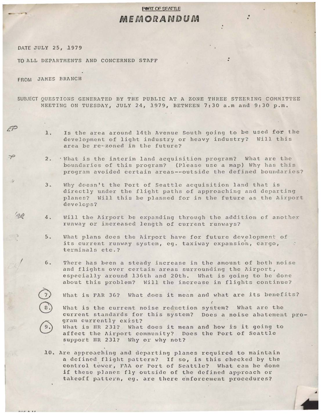 Port of Seattle – Letter to Zone Three Committee: Q&A, August 29, 1979